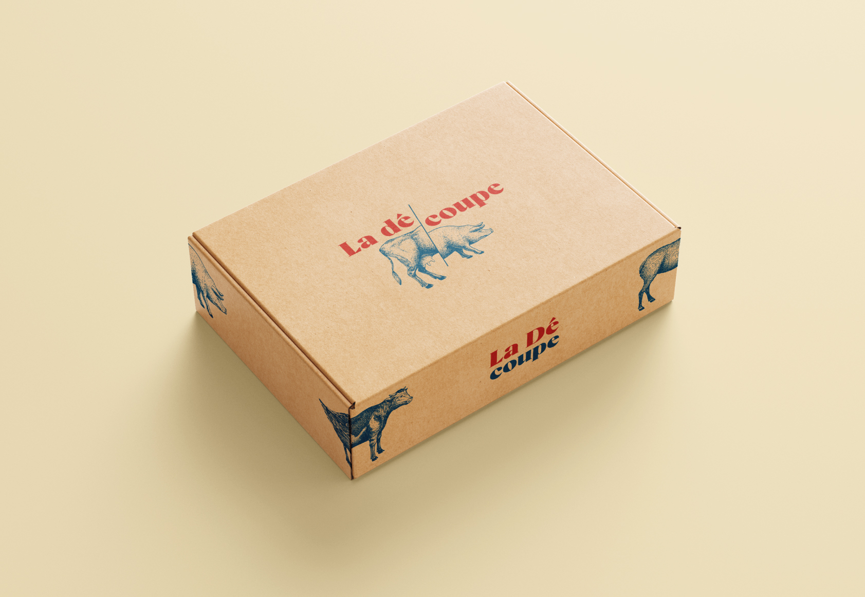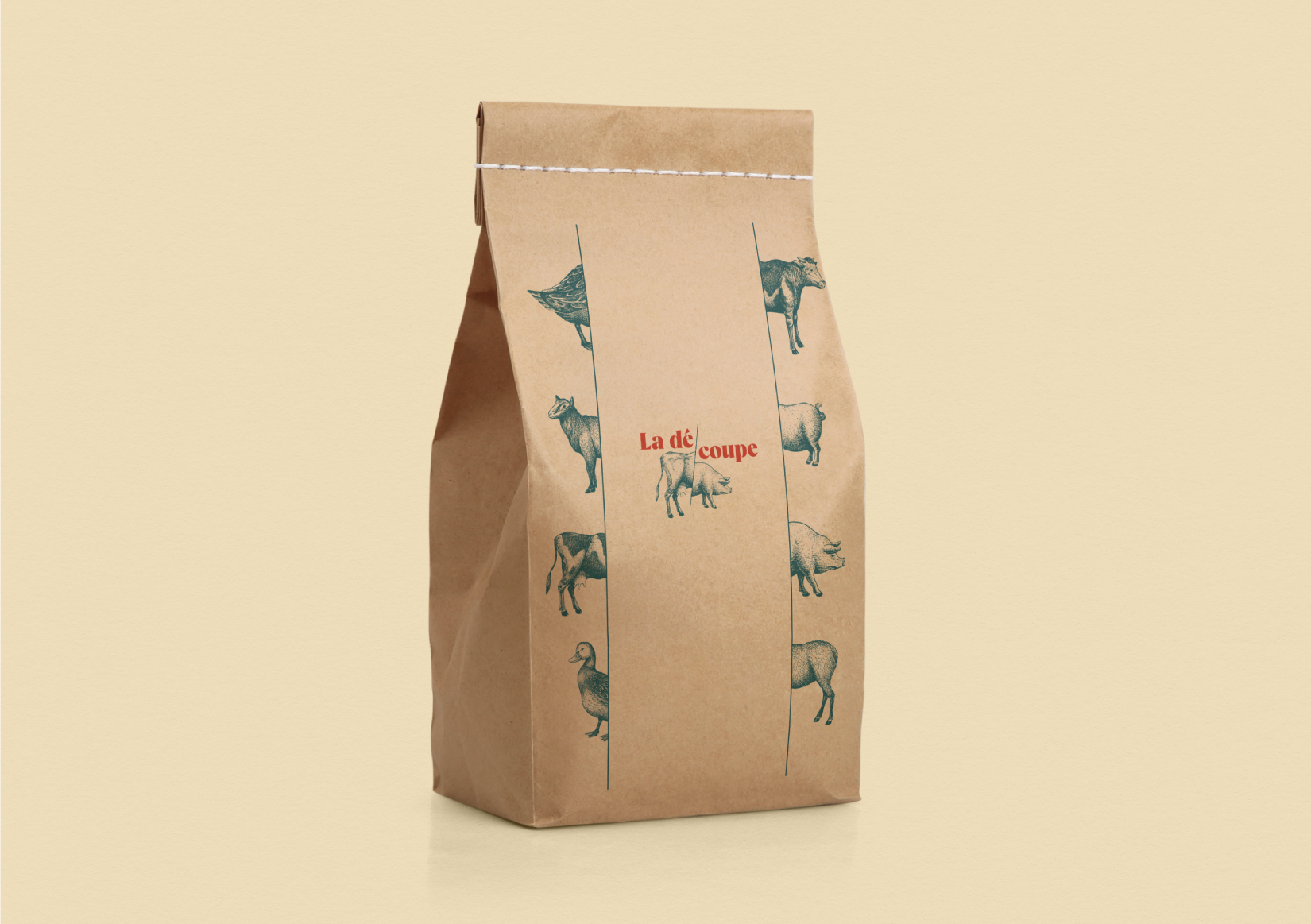 Un boucher qui ne manque pas d’humour. Entre jeu de mots et visuel décalé, l’identité repose sur l’association graphique de deux animaux. Résultat : un univers rustique, brut et marquant, à l’image du savoir-faire artisanal de la maison.